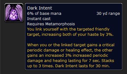 – The effects of Dark Intent can stack up to 3 times and increases overall periodic damage and healing done, not just the chance to crit.
